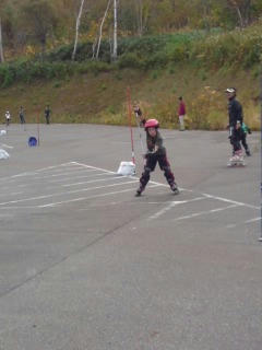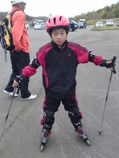 土曜日はアルペンスキーの陸トレで、インラインスケート講習会で、友くんをおんぶして見学か、いたずらっ子友くんと車で待機。