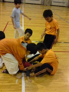 夕方は空手の会場設営のお手伝いで、友くんはずっとおんぶ。