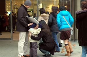 大通公園は只今、雪祭り雪像造りのため閉鎖されていて、人通りは少なく、札幌の一等地?三越、パルコ、4プラ前でやりました。