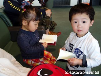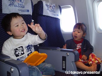 離陸直後、急上昇中の機内の中で宇くん少々怯える。気流に乗るときのあの揺れがさすがに来たらしい。