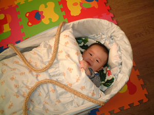 抱っこするとご機嫌になる冷えピタ宇くん。