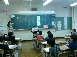 授業参観では国語で、自分の最近のニュースを絵にして一人ずつ前で発表。