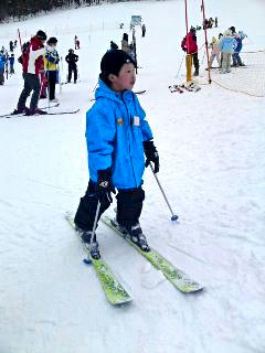 宇くんのスキー板は年中の時に買ったので、さすがに小さく感じてきた。