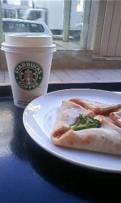 まずはスタバで朝食よ。