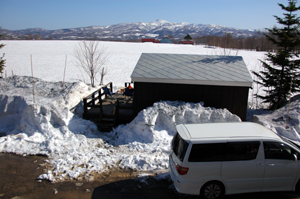 周りは雪がまだまだ残っているけれど、雲ひとつないピーカンの天気で一気に雪解けは進んでいました。