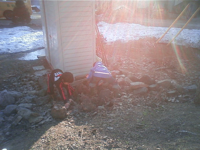 子供達は長靴はいて、さっそくミミズ採取にいそしんでいました。