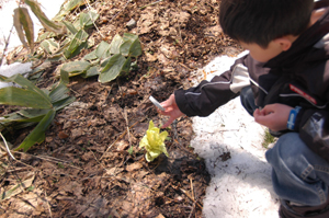 まだ雪が残っている道はちょっとコースを外すとひざ下まで足が埋まります。