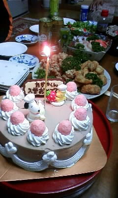 結局宇くんもロウソク吹いて、上に乗っているスヌーピーたちとチョコしか食べなかったし。