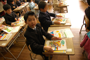 学校へ行くと、さっそく同じようにランドセルを背負った新一年生が続々と。