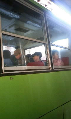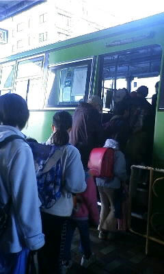 混み混みのバスの中も、上級生がちゃんと面倒を見て、1年生達を座らせていました。