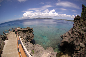 北海道は深く青く、空も高く感じるけど、沖縄は青いけど北海道ほど高く感じない。