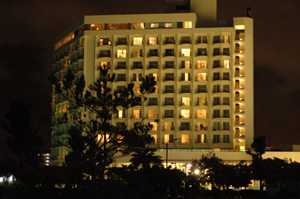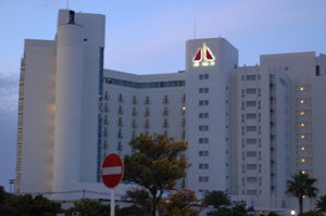 屋外に出てみると、宜野湾コンベンションセンターと隣接しているのでお隣のイベントのリハーサル風景が遠めで見える。