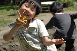 山菜の宝庫でもある園庭で今夜のおかずにフキをいただく。