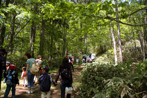 普段から盤渓の山散策に慣れ親しんでいる子供たちなので、ちょっとしたこの登山?コースも途中疲れてはおやつタイムを取り、約2時間近く、なんとかみんなクリアできました。
