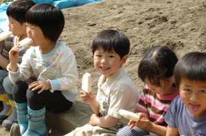 その後、園舎でも瓶詰めクサヤが開封され干しカレイがおかずに出たり、園舎内は幼稚園らしからぬ、居酒屋な香りが・・・・。このクサヤ日本酒とともに是非食べてみたいものです。