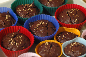 | 1.オイルとココアを滑らかに混ぜる。(ここでしっかり丁寧に) 2.上記に黒砂糖、豆乳の順によく混ぜ合わせる。 3.塩を加えて甘みを引き立てる。 4.粉を加えてよく混ぜる。 5.最後にくるみなどを混ぜ合わせる。 180℃で20分~25分で焼き上げます。 |
