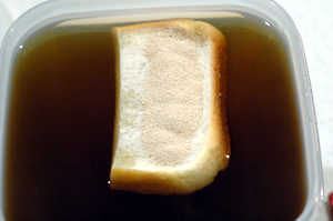 本日は、タンポポの花を洗って、熱湯をまわしかけて一晩漬け込む作業をしました。