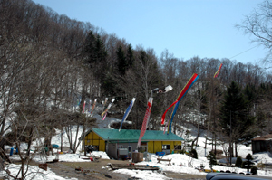 雪も大分融けてきたけど、残ったゲレンデの雪でどこかの幼稚園児たちがボブスレーで遊んでいました。楽しそう♪