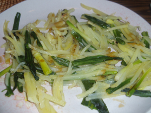 これもまた「わらのごはん」のレシピのにらを行者にんにくに変えて、ジョンをつくりました。