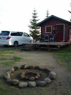 寒いので暖炉のある素敵なセンターハウスにて。