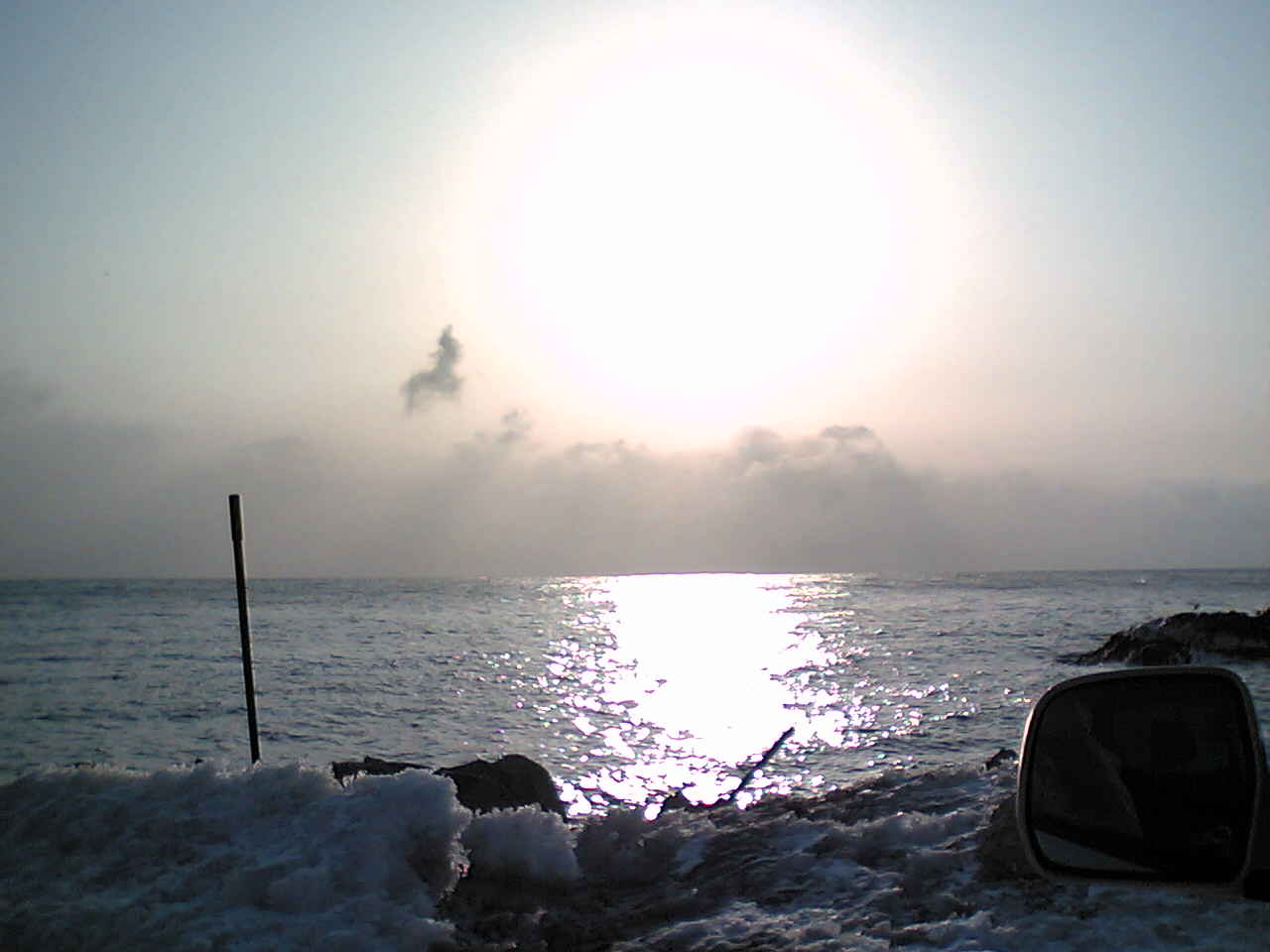 ダイビングポイント近くの光ゴケの駐車場に5時15分頃到着。車を停めて2時間ほど寝ました。